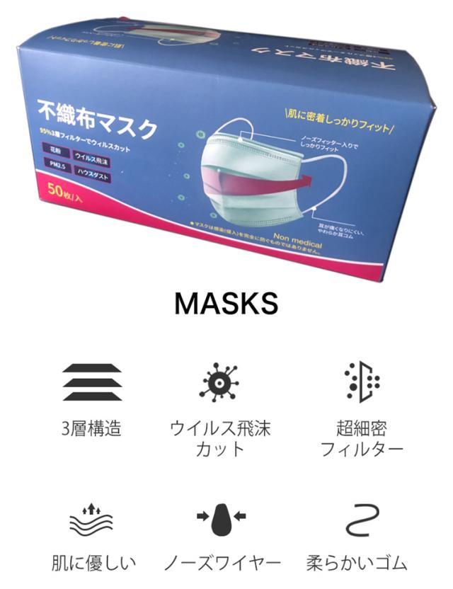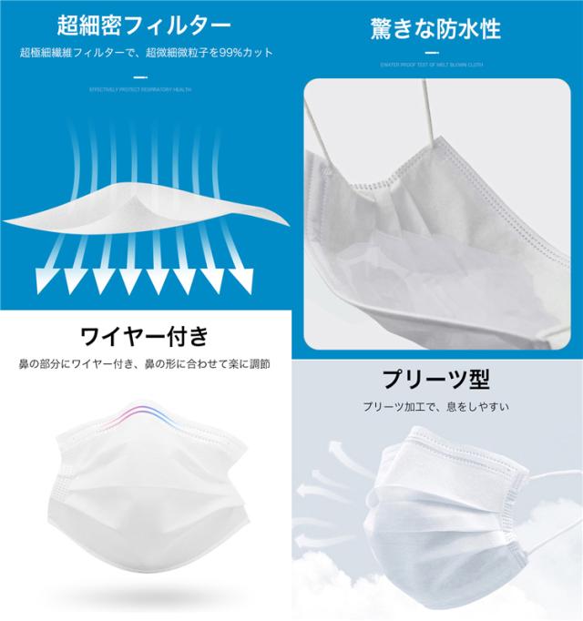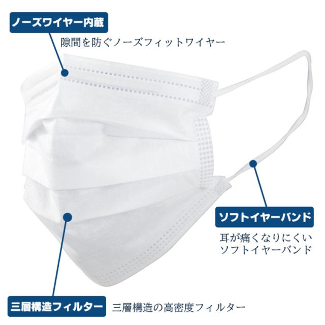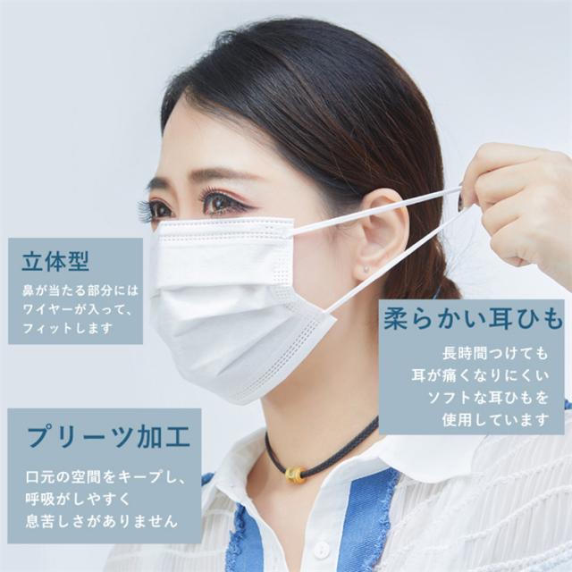 即納 不織布マスク 50枚*2箱 白 使い捨てマスク 立体 3Dマスク 男女兼用 大人 三層構造 飛沫防止 花粉対策 ウイルス対策 通勤 通学マスク