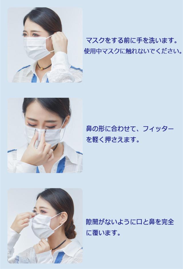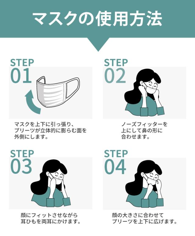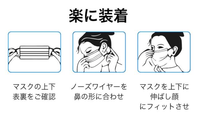 立体形状がロ元に空間をつくり息苦しさを軽減できる。 鼻と着用するときは、マスクが鼻から顎までのブリッジを覆っていることを確認して、期待される保護効果を得てください。