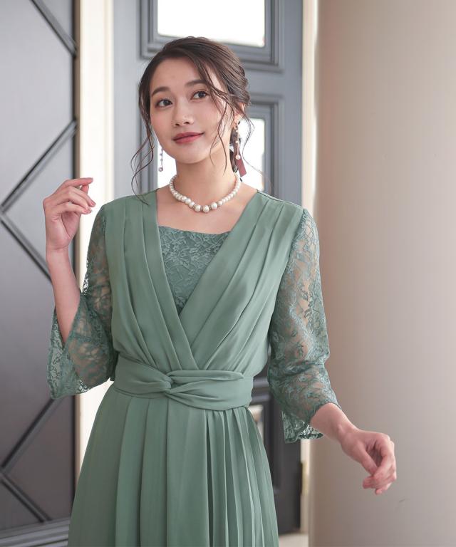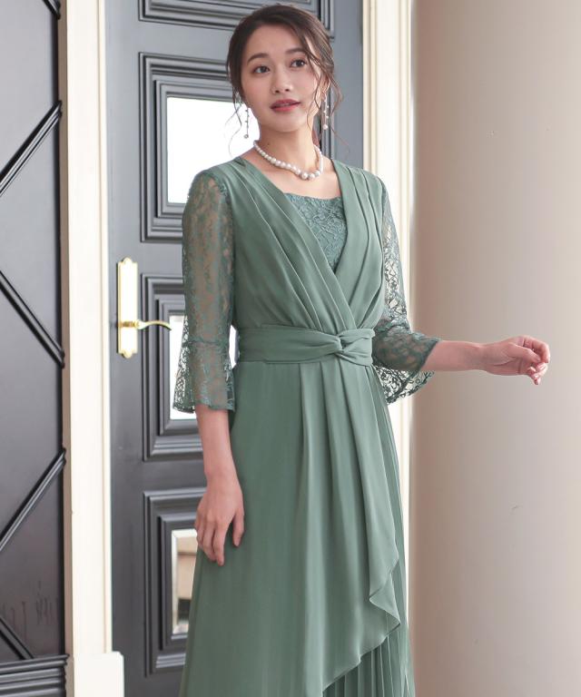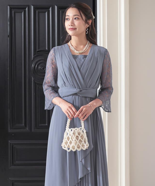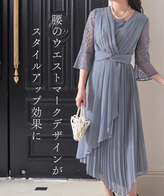 プリーツスカートをアシメデザインに仕上げたこだわりの1枚 ●こだわりポイント アシメプリーツのこだわりスカートが特徴のドレス。 袖にかけて広がるレースデザインが可愛らしさをプラス。 前開き仕様のため、着脱が楽チンなのも嬉しいポイントです。 ウエストは後ゴム入りで着心地抜群です。 ●体型カバーポイント ウエストマークデザインが全身のメリハリを生み出し、スタイルアップ効果を与えてくれます。 透け感のある袖レースは華奢見せや二の腕カバーが期待できます。 ●おすすめ着用シーン 【結婚式】【二次会】【謝恩会】【同窓会】【お食事会】【お呼ばれ】【セレモニー】【演奏会】など幅広いシーンで着用いただけます。 ※注意コメント デザインによりサイズ感が異なりますので、詳しい仕立てサイズ表をご確認ください。 お客様のパソコン・スマホのモニターや照明等により、実際のお色と多少異なるように感じられる場合がございます。 ご了承ください。