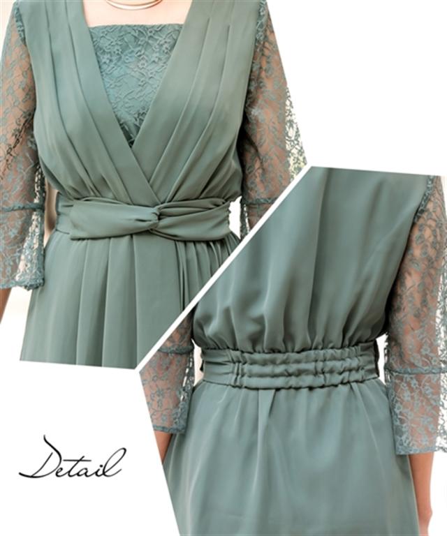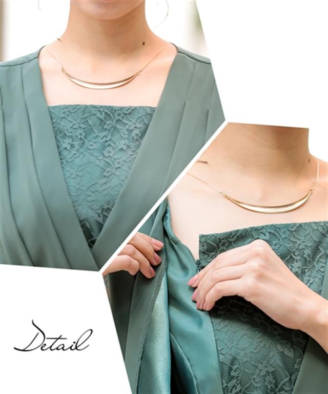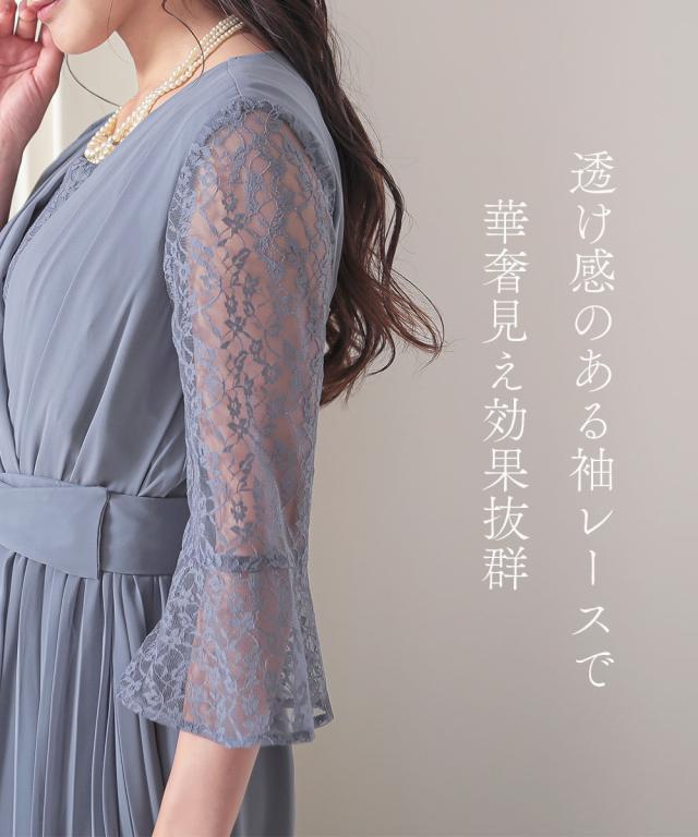 前開きアシメプリーツ使いレースワンピースドレス【結婚式・二次会・お呼ばれ対応】<大きいサイズ>