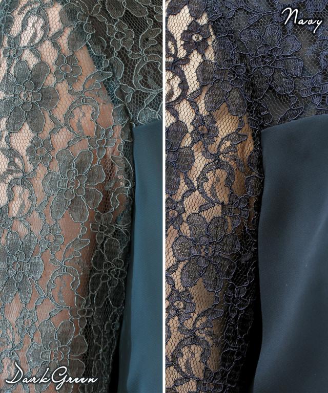 品質=[本体]ポリエステル100% [別布]レーヨン65%・ ナイロン35%(レース)[裏地]ポリエステル100% 【裏地】有(身頃部) 後ファスナー開 レース柄の出方が多少異なる場合があります。 繊細なレースを使用しているため、引っかかりなどにご注意ください。※注意コメントデザインによりサイズ感が異なりますので、詳しい仕立てサイズ表をご確認ください。お客様のパソコン・スマホのモニターや照明等により、実際のお色と多少異なるように感じられる場合がございます。ご了承くださいませ。 洗濯表示:ドライクリーニング