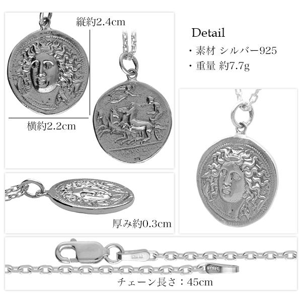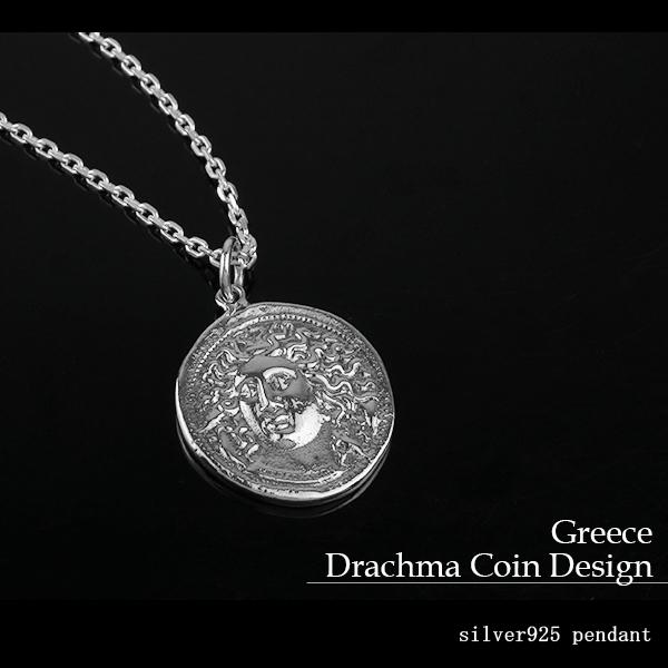 ドラクマ コイン シルバー ネックレス (チェーン付き) 硬貨 ペンダント シルバー925 ギリシア 銀貨 メンズ メンズネックレス 男性 プレゼント 人気 かっこいい