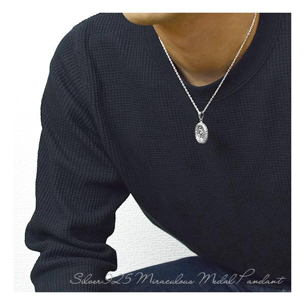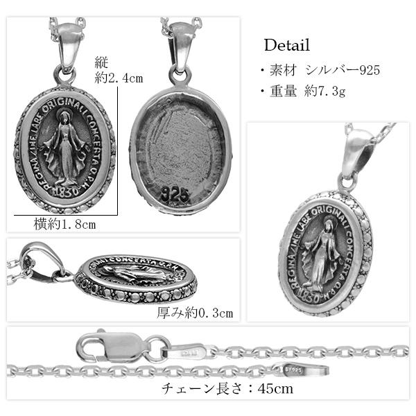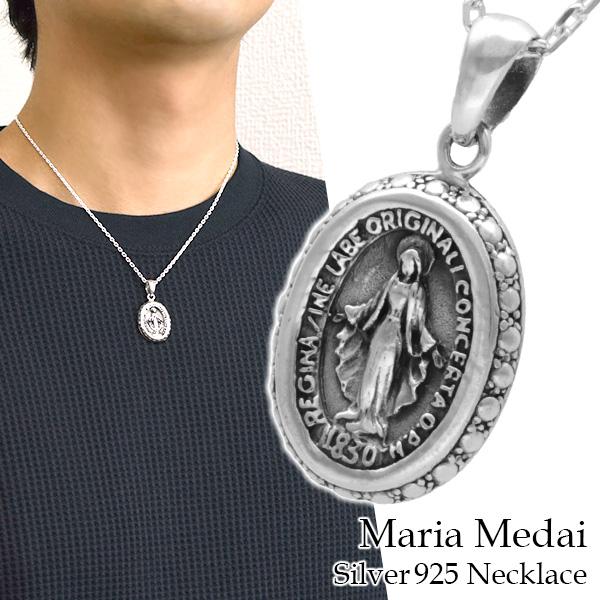 不思議のメダイ シルバー ネックレス (チェーン付き) 聖母マリア ペンダント シルバー925 マリア 奇跡のメダイ メダル キリスト メンズネックレス