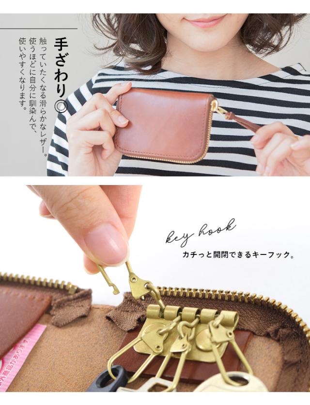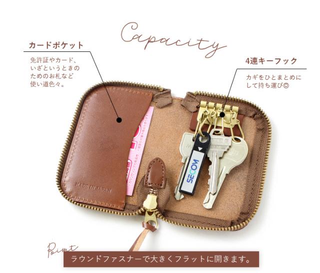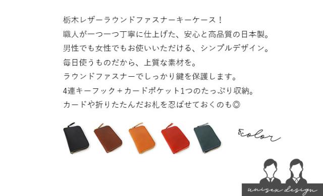 本革キーケース レディース キーケース 栃木レザー メンズ ラウンドファスナー カード入れ ケース カードポケット おしゃれ コンパクト 5連 リング カギ 鍵 栃木 レザー 革 男女兼用 日本製 ハンドメイド シンプル 薄い【i098ar】