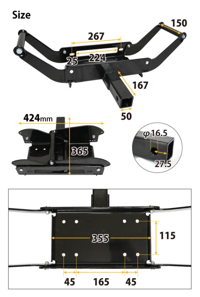 ウインチマウントプレート リアウインチ 脱着式 デタッチャブル マウンティングシステム 電動ウィンチ 取り付けプレート KIKAIYA