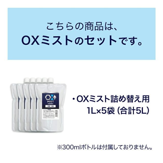 特許製法 次亜塩素酸水 OXミスト オックスミスト 1L×5袋 除菌消臭スプレー 日本製 次亜水 次亜塩素酸水溶液