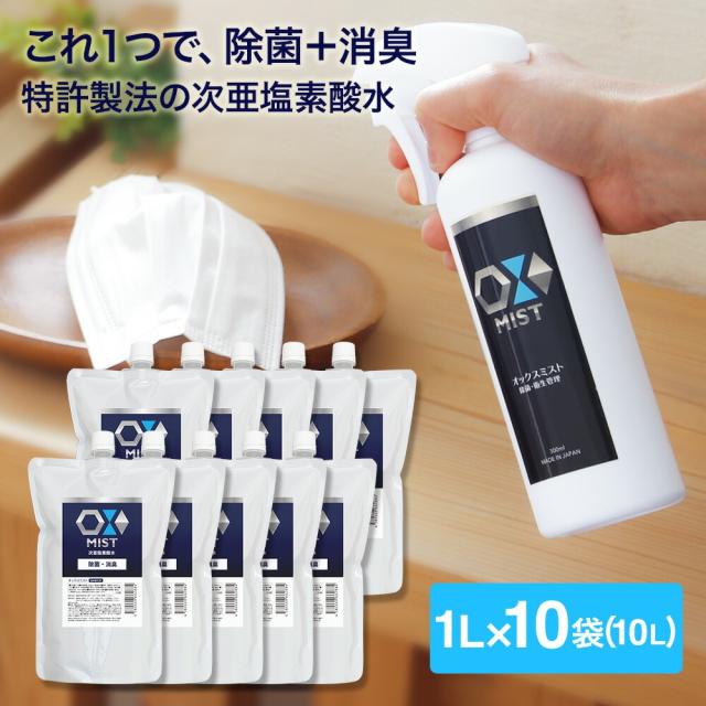 特許製法 次亜塩素酸水 OXミスト オックスミスト 1L×10袋 除菌消臭スプレー 日本製 次亜水 次亜塩素酸水溶液