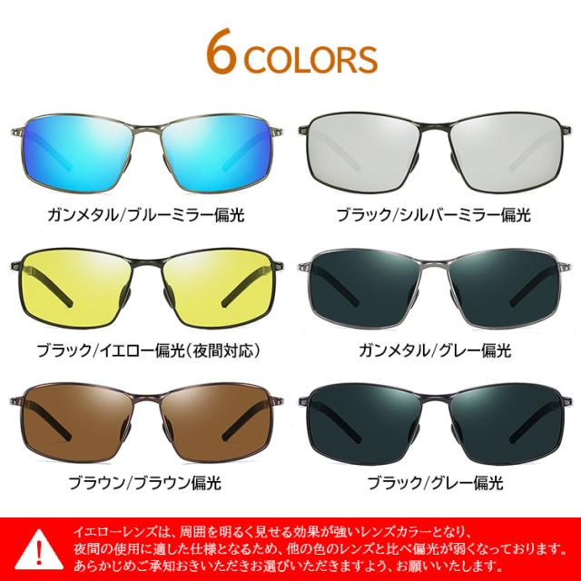 偏光 サングラス メンズ UVカット 紫外線対策 ao071 スクエア メタル 軽量 ドライブ 運転 夜間対応 釣り バネ蝶番 持ち運びに便利 定形外選択で送料無料