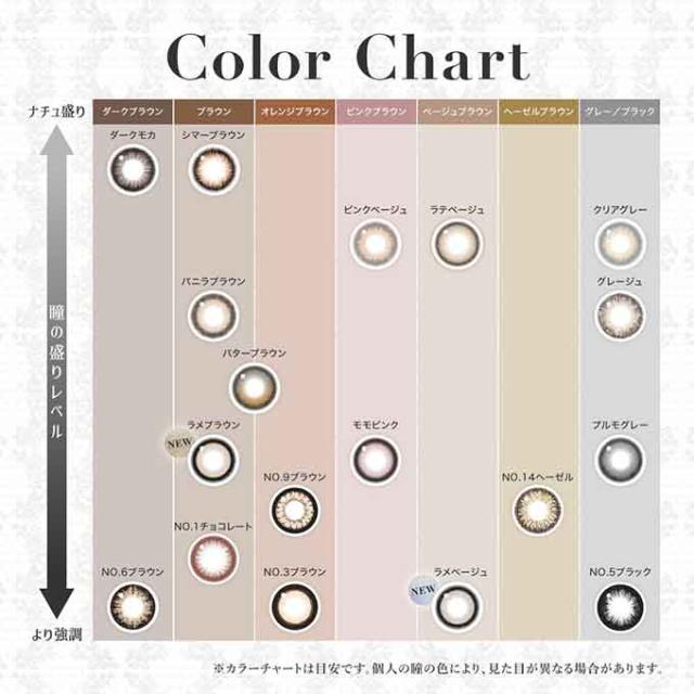 ラメベージュ / ラメブラウン / バニラブラウン / モモピンク / ラテベージュ / ダークモカ / グレージュ / ピンクベージュ / NO.1チョコレート / NO.3ブラウン / NO.5ブラック / NO.6ブラウン / NO.9ブラウン / NO.14ヘーゼル / クリアグレー / シマーブラウン