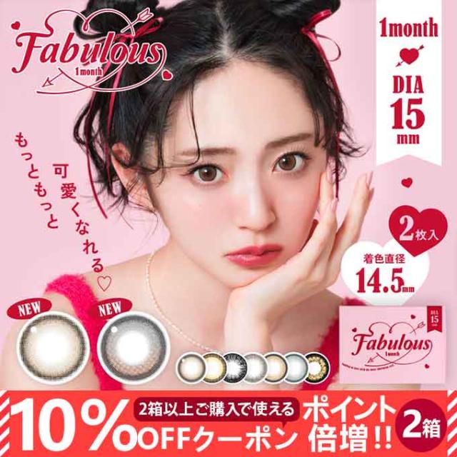 【10%OFFクーポン配布中!】2箱4枚(2枚入×2)リニューアル!カラコン 1ヶ月 ファビュラス 度なし 度あり カラーコンタクトレンズ マンスリー 1month 15.0mm 鈴木愛理