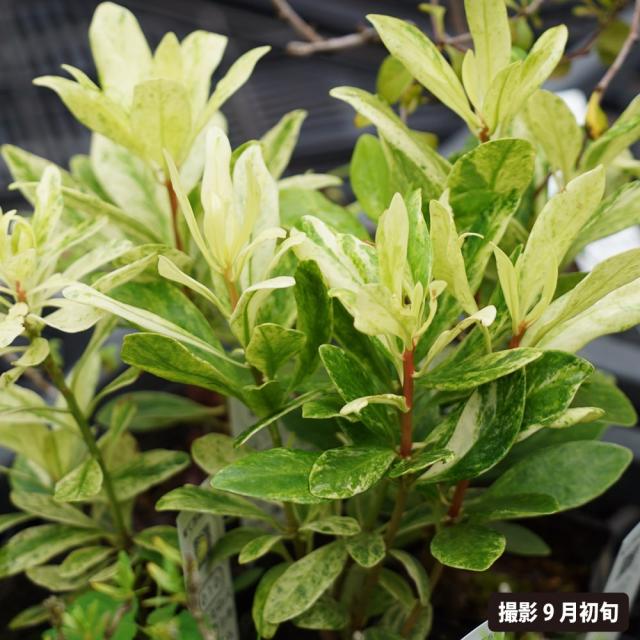 仏様に供える木 葉に明るい白散斑が入る美葉品種