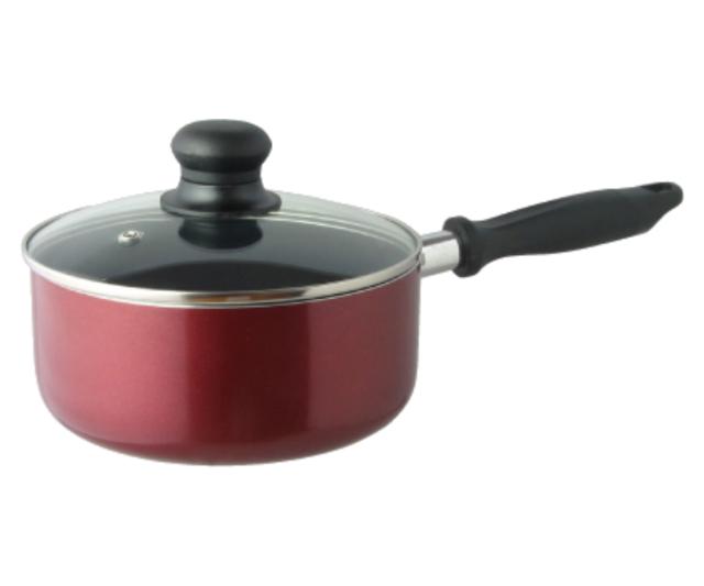 片手鍋 18cm IH対応 キュイジーヌ ガラス蓋付き ( ガス火対応 片手なべ 調理鍋 18センチ アルミ鍋 なべ 鍋 フタ付き 蓋付き フッ素樹脂加工 調理器具 レッド 赤 )
