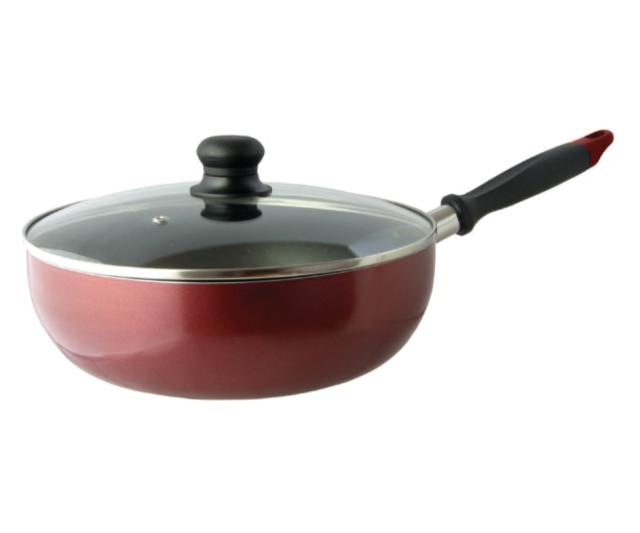 マルチパン 26cm IH対応 キュイジーヌ ガラス蓋付き フライパン ( ガス火対応 炒め鍋 深型フライパン 26センチ いため鍋 ディープパン アルミフライパン なべ 鍋 フタ付き 蓋付き フッ素樹脂加工 調理器具 レッド 赤 )