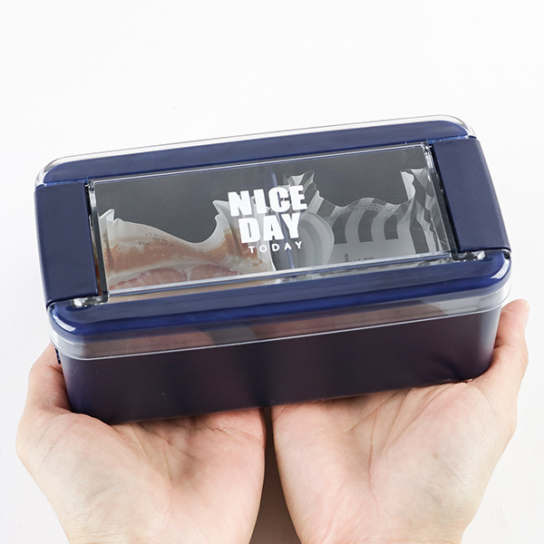 銀イオンの抗菌加工が施された弁当箱です。容量は女性や小学生以上のお子様にちょうどいい520mlです。上から見て中身が確認できるクリアな蓋は家族で複数のお弁当を用意されるご家庭でも、取り間違え防止になり、お弁当の中が見えるので食欲がそそられます。