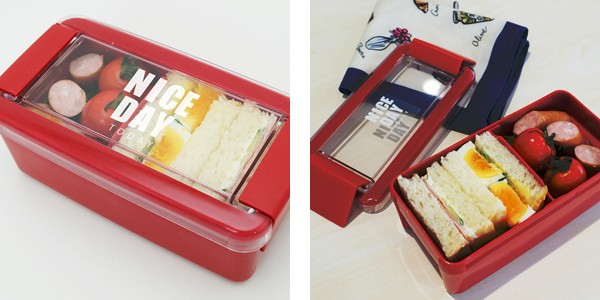 蓋の内側には内部空間があるので、おかずを蓋で潰してしまう心配がなく、ふんわりと盛り付けることができます。本体の高さ6.3cmと深めなので、サンドイッチや丼ものが入れやすいです。