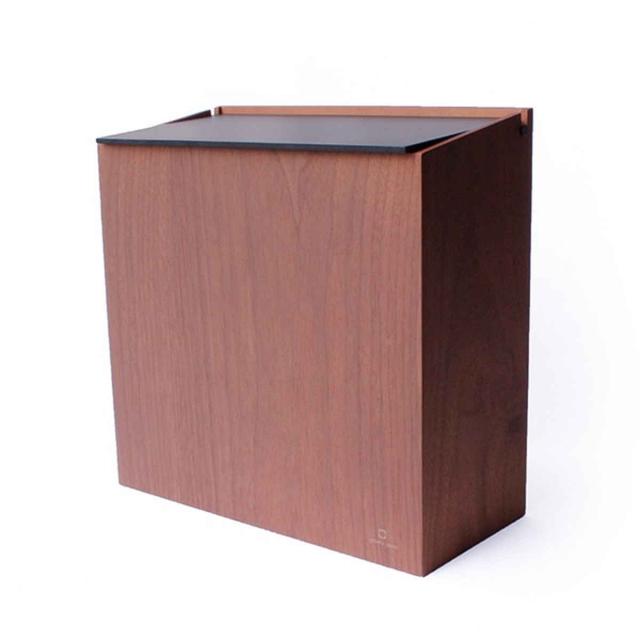 奥行14.5cmとスリムで場所をとらないダストボックスです。壁付けや、デスク下、ちょっとした隙間空間など様々なシーンで利用できます。美しい木目のウォールナットの突板が、深みのある上品なお部屋を演出します。