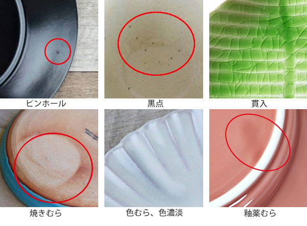 原料や製造方法により、上記のような特性がみられる場合があります。ひとつひとつのうつわの持つ個性、温かみある風合いとしてお楽しみいただければ幸いです。