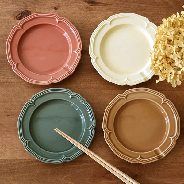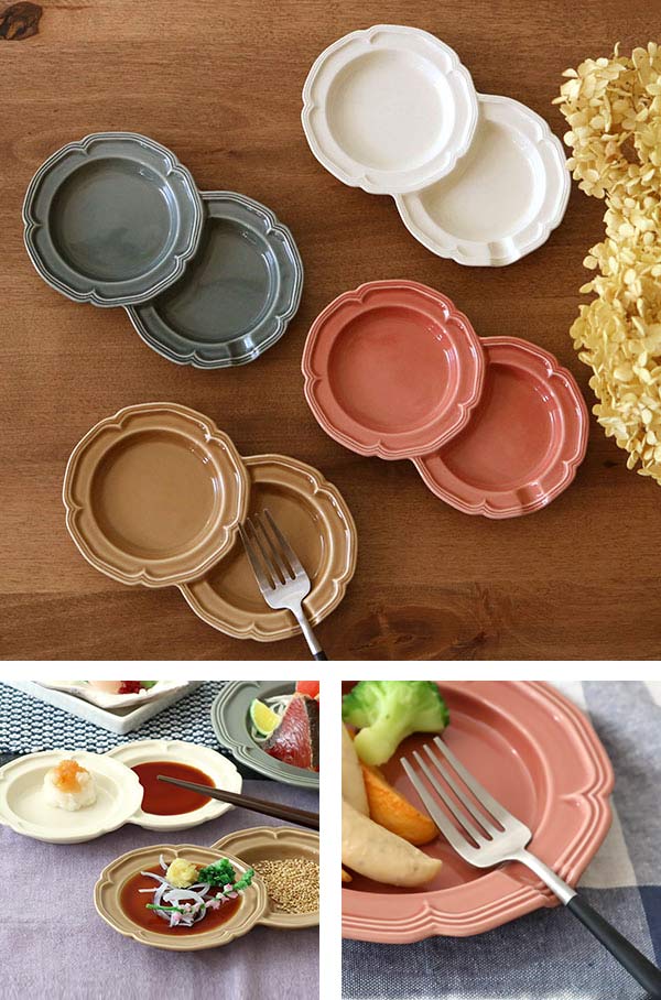 テーブルを華やかに彩るお花の形が印象的な「ファムプレート」シリーズ。日本有数の陶磁器生産地として知られる、愛知県瀬戸市で作られた瀬戸物の日本製です。4色揃えて賑やかに、同色で揃えてワントーンを楽しむ、どちらもおすすめです。お友達を招いて、つい自慢したくなるおしゃれなコーディネートが完成です。