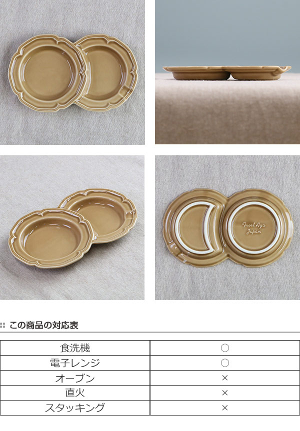 プレート 18cm ダブル ファムプレート Fam Plate 皿 食器 洋食器 陶器 日本製 ( 電子レンジ対応 食洗機対応 小皿 2連 箸置き リム皿 お皿 リム 仕切り 醤油 薬味 箸休め かわいい おしゃれ )