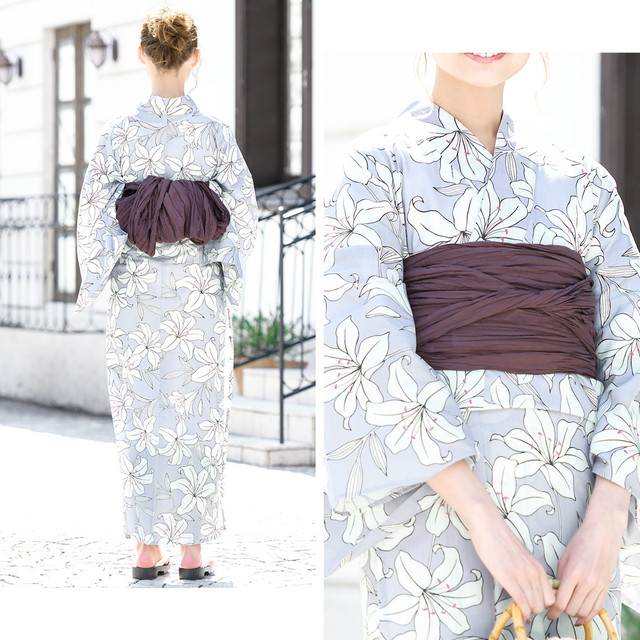 浴衣セット レディース レトロ 浴衣セット 大人 2024 3点セット 水色系 白系 ホワイト ボルドー 百合 ユリ 花 フラワー 夏祭り 花火大会 女性用 S・フリー