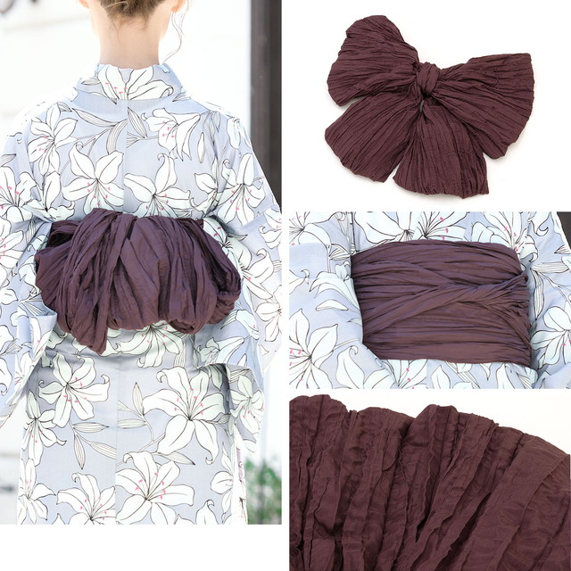 帯は、体に巻いて後ろで結ぶタイプの兵児帯です。