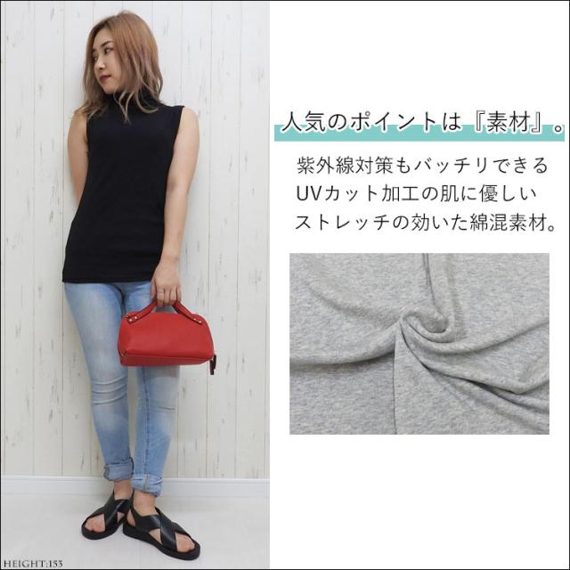 平日12時 平日祝9時即出荷 タンクトップ レディース コットン インナー 薄手 ノースリーブ 綿 ハイネック シンプル かわいい トップス ボトルネック おしゃれ 袖なし Tシャツ 無地 大人 上品 きれいめ カジュアル ストレッチ UV 紫外線 日焼け 対策 ママ 春夏
