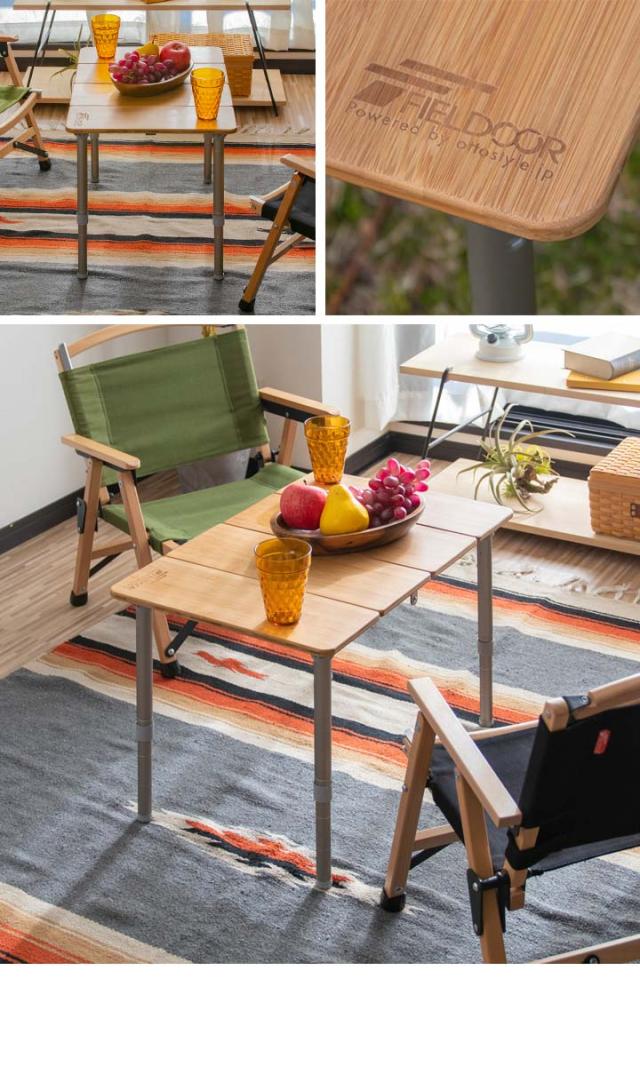 レジャーテーブル 折りたたみ バンブー 竹製 幅 60x40cm ピクニックテーブル テーブル ローテーブル アウトドアテーブル キャンプ アウトドア ピクニック バーベキュー ナチュラルウッド 竹 天然木 木製 FIELDOOR 送料無料