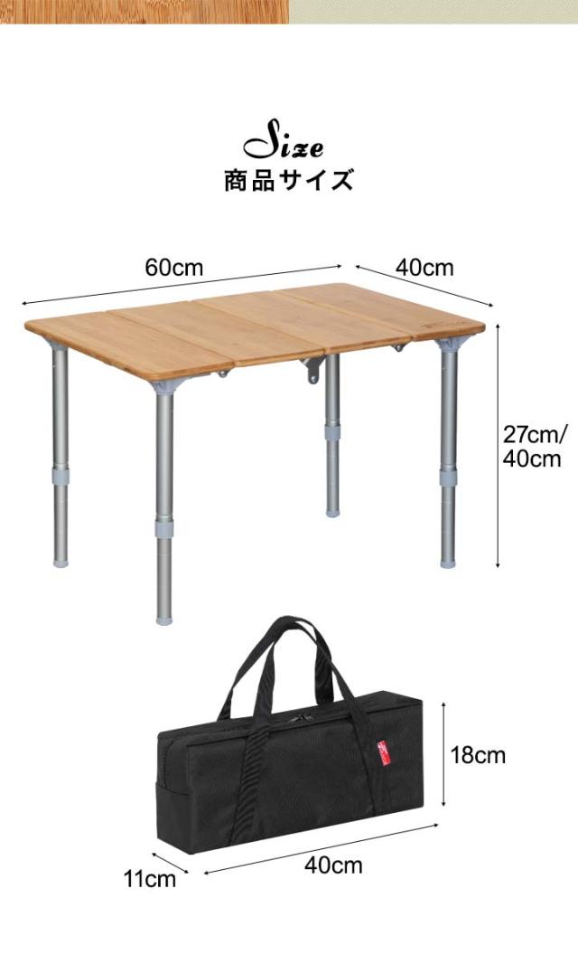 | サイズ: テーブル : (約)W60cm×D40cm×H27cm / 40cm 折りたたみ時 : (約)W40cm×D11cm×H18cm |