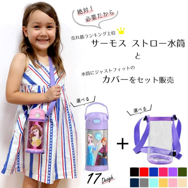 サーモス 水筒 子供 水筒カバーセット ストロー水筒 肩ひも ストラップ 355ml 女の子 ディズニー キャラクター 子供用 THERMOS