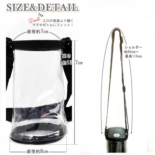 THERMOS ストローボトル:直径約6.8cm×高さ約18.6cm/ 12オンス(約350ml) PB ボトルホルダー:底面8W×13.7H cm / ショルダー長さ50〜100cm |