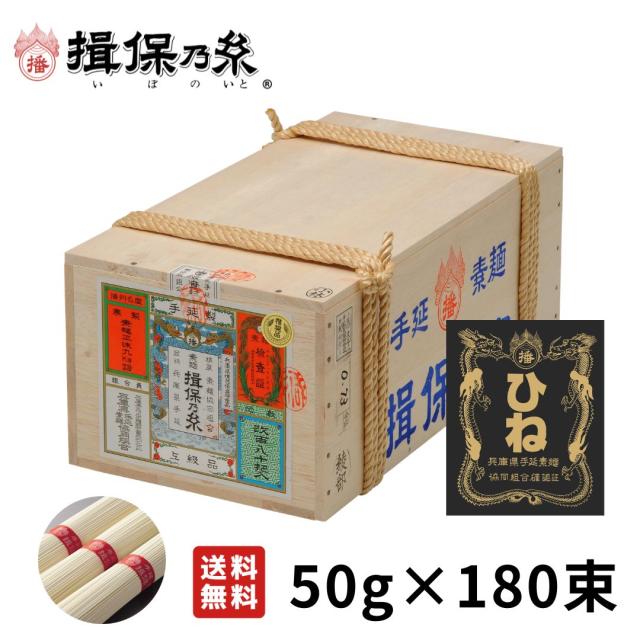 揖保乃糸 ひね物 そうめん 上級品 赤帯 手延素麺 50g×180束 荒木箱 /F上9K/