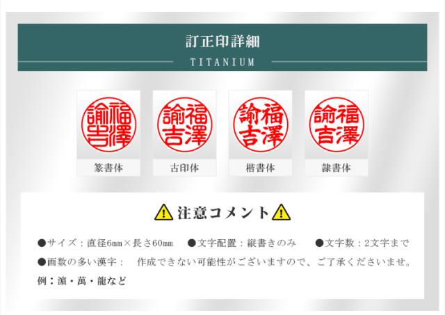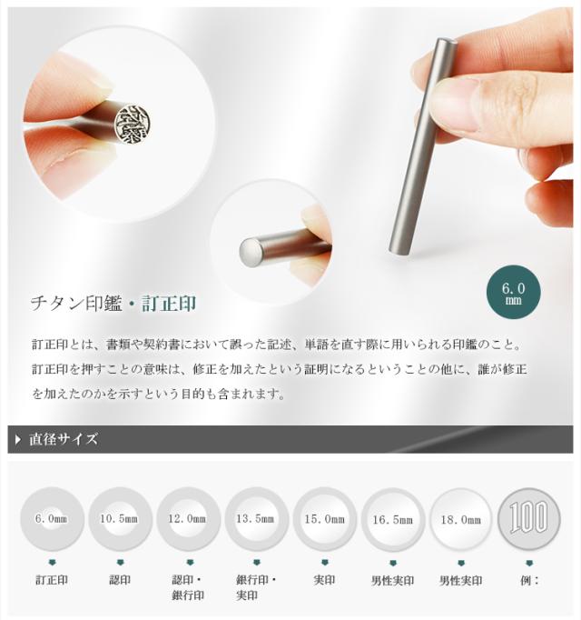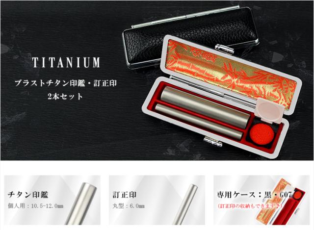 認印+訂正印/銀行印+訂正印2本セット【チタン印鑑10.5-12.0mm+チタン 訂正印6mm 2本入る印鑑ケース付き】ネコポス無料