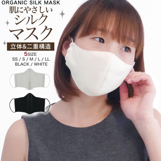 2重構造 立体 シルク 高級 マスク 5サイズ 黒 白 肌荒れしない天然素材 絹100% 高品質シルク 男女兼用 日本国内発送 ウイルス 花粉 ブラック ホワイト 小学生 大人 メンズ キッズ