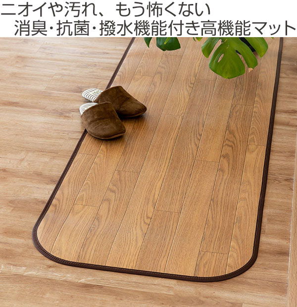 ラグ ダイニングラグ 撥水 150×60cm 木目調消臭フリーマット ニオクリン ( インテリアマット ラグマット 廊下マット 消臭 拭ける キズつきにくい 抗菌 クッション性 ペット 子ども 汚れ におい 丈夫 )