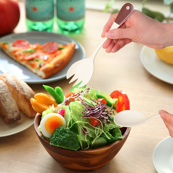 《LH4127 サービスフォーク サラダサーバー サービングフォーク 分ける 大皿料理 パーティー 宴会 サラダ取り分けフォーク キッチン用品 キッチン雑貨 カフェ食器 カフェ風 テーブルウェア ティータイム 食器 可愛い オシャレ お洒落 かわいい おすすめ 人気 便利 日常使い オススメ 日常 プレゼント 贈り物 ギフト お祝い お返し 引っ越し祝い 新生活 大きい 大きめ 生成り カフェ ツートン 茶色》