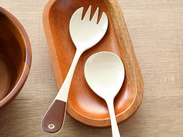 ●上品で温かみのある琺瑯(ホーロー)で仕上げたサラダフォークです。