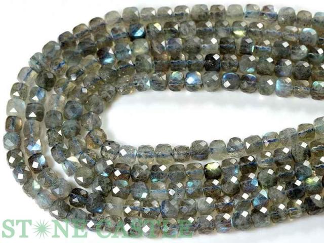 【天然石 カットビーズ】ラブラドライト キューブ型カット 4mm