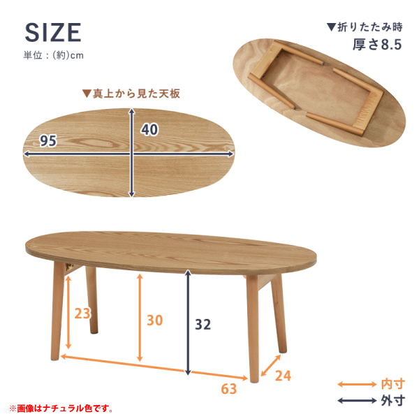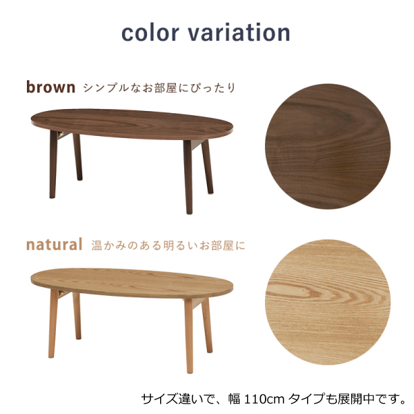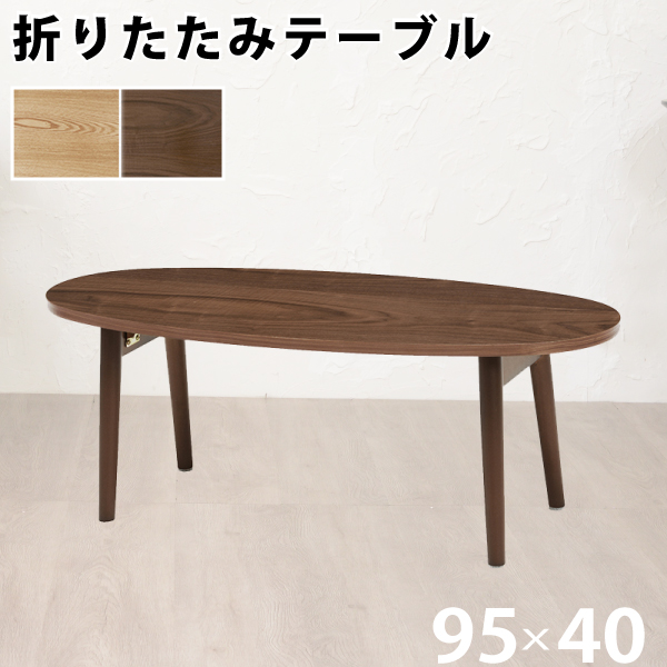 センターテーブル 折りたたみ式 楕円型 幅95cm ブラウン 天然木 テーブル ローテーブル リビングテーブル オバール シンプル 代引不可