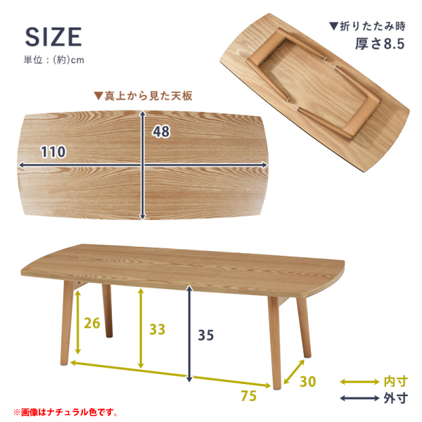 ■折りたたみ式■角型、長方形■幅110x奥行48cm■ナチュラル色(タモ材)
