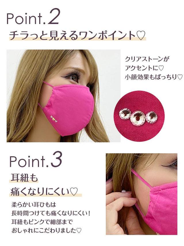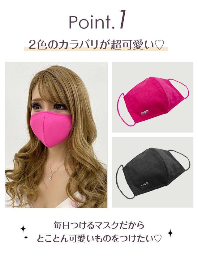 ☆耳紐も色付きで細部までこだわったマスクはワンポイントのビジューが小顔効果◎なかわいいマスク♪