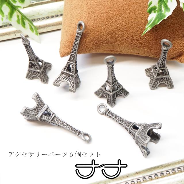 送料無料 チャーム アクセサリーパーツ オリジナル簡単制作 ハンドメイド 材料 テレビ塔 アンティークカラー 立体型 6個入り