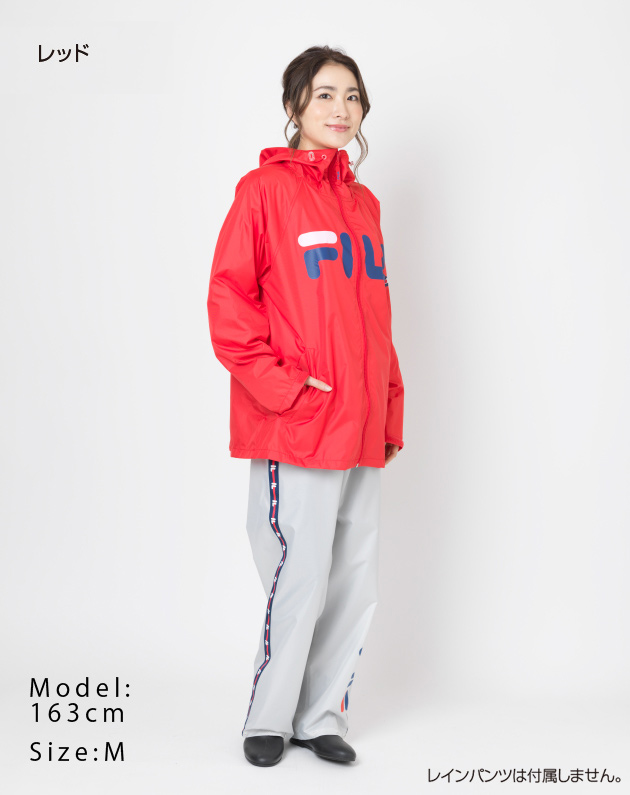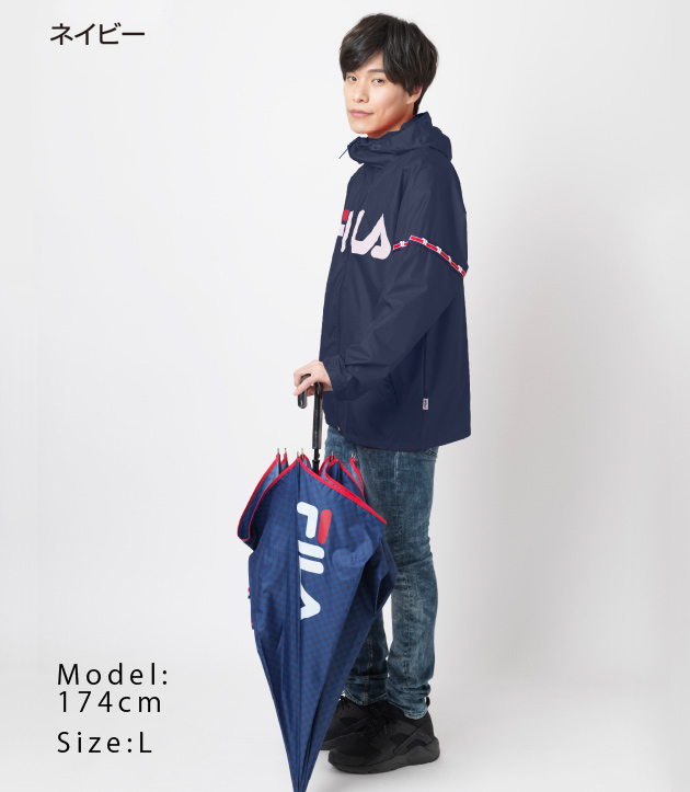 ・襟元が高く雨の侵入を軽減 ・前面に大きな「FILA」ロゴ