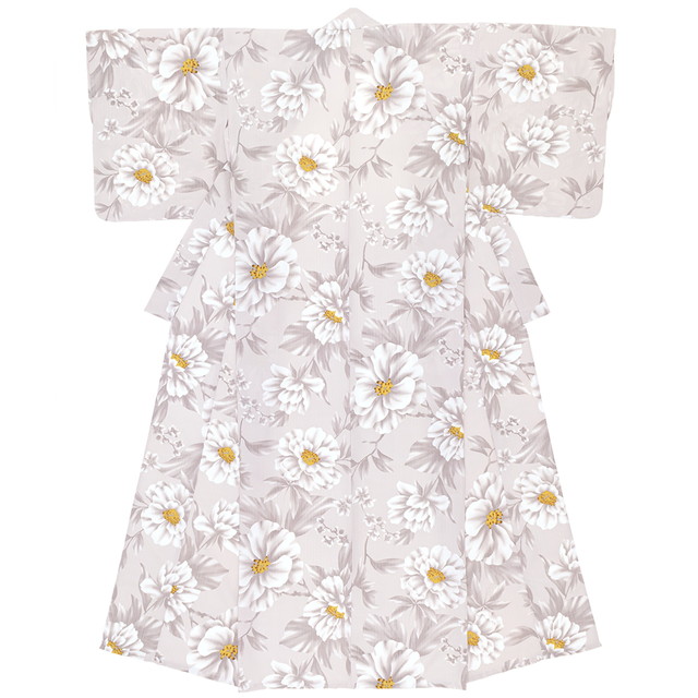 浴衣 レディース グレー系 灰色系 白 牡丹 花 大柄 モダン 変わり織り 夏祭り 花火大会 女性用 仕立て上がり 【Sサイズ】【フリーサイズ】【送料無料】