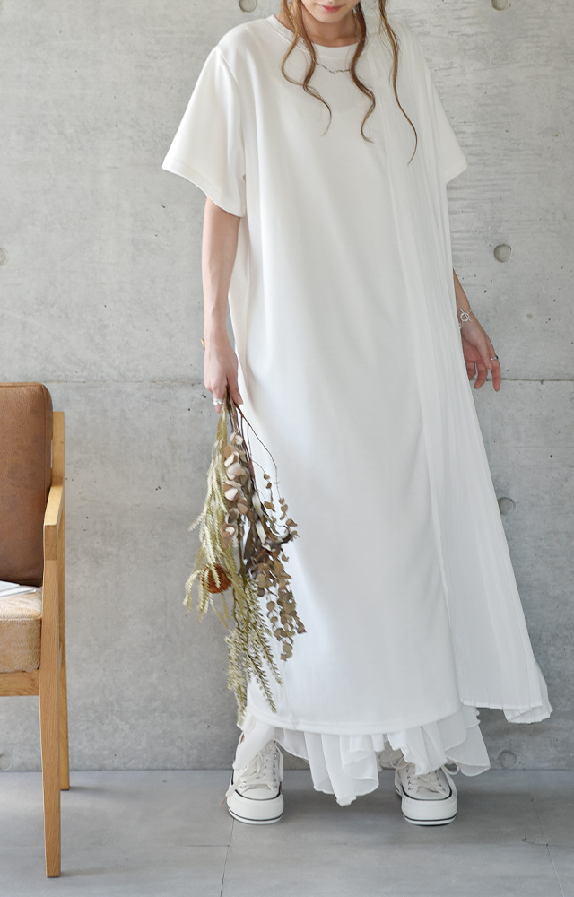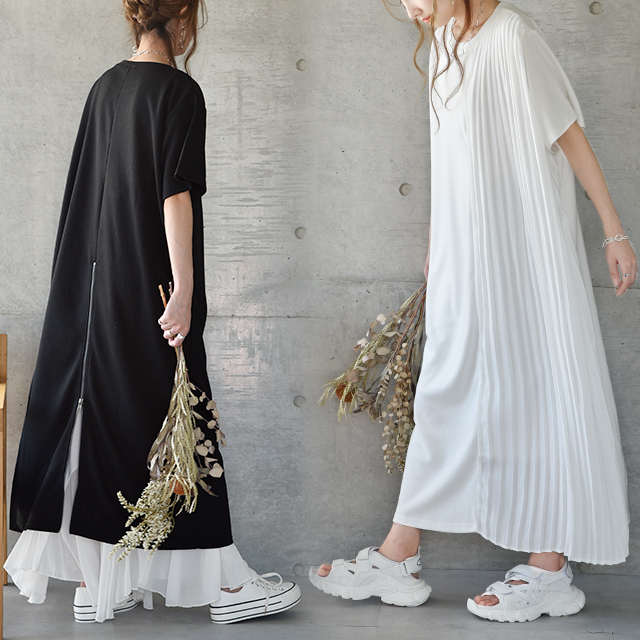 Tシャツ Tシャツワンピ Iラインワンピース マキシワンピ カットソー カットソーワンピース カットソーワンピ バックスリット マキシ プリーツワンピース Aラインワンピース Aライン レイヤード 丸首 U字ネック Uネック プルオーバー 裏地 スウェット スエット ジップ 大きいサイズ 無地 グレー 白 夏 灰色 グレー 白 白色 ホワイト 黒 黒色 ブラック 20代 30代 40代 50代 おしゃれ 母の日 お洒落 オシャレ かわいい 可愛い カワイイ フリーサイズ M L XL XXL 2L 3L HUG.U HUGU ハグユー はぐゆー