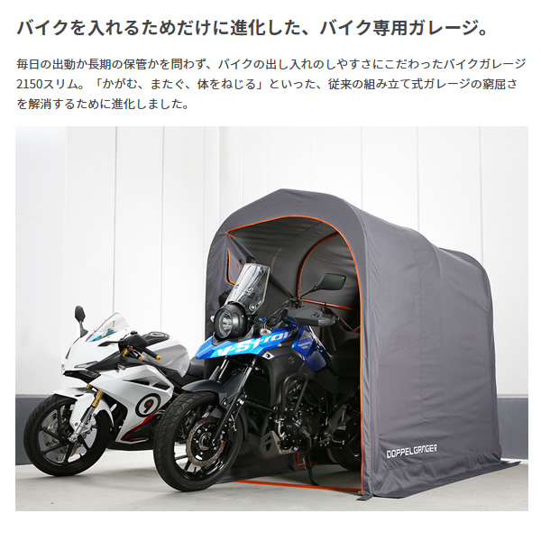 【メーカー直送】 ドッペルギャンガー 中型 バイクガレージ 2150 スリム DCC539-GY