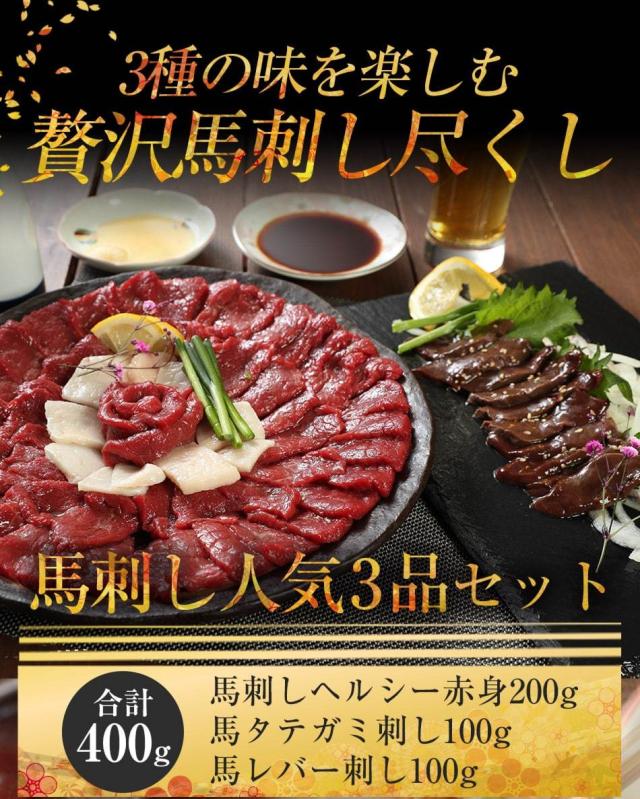 馬刺し ギフト 馬刺し 赤身200g レバー刺し100g タテガミ刺し100g セット送料無料 馬刺し レバ刺し タテガミ合計400のセット衛生検査合格品 お取り寄せ お試し