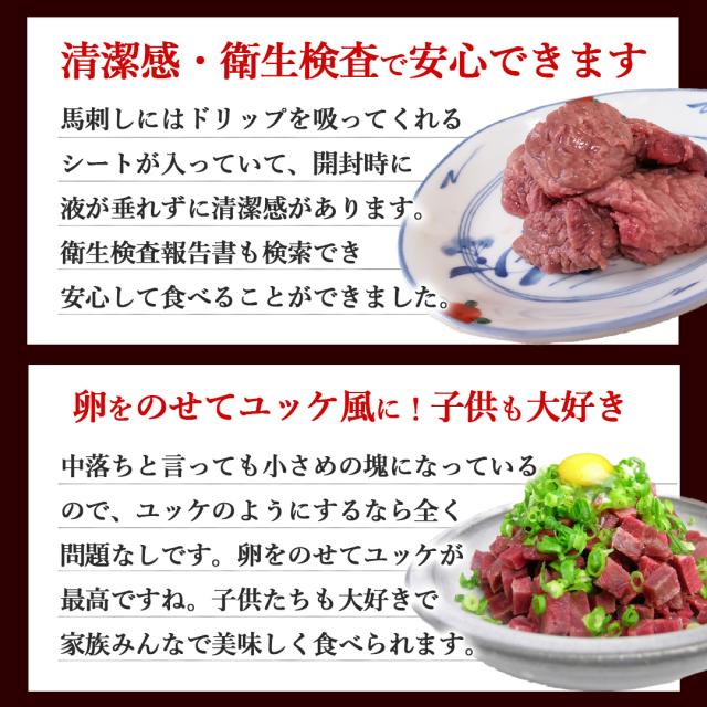 | 内容量 | 馬刺し中落ち赤身 200g 馬刺し専用タレ(規定量) | |