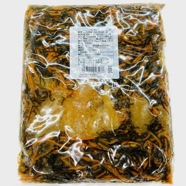 原材料名:人参、こんぶ、数の子【数の子含有量12%】、するめ、醤油、砂糖、魚介エキス、酒、こんぶエキス、