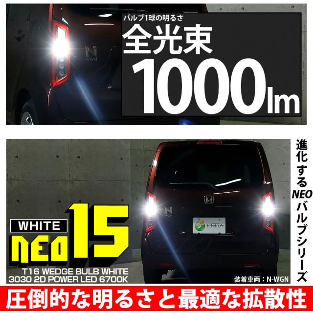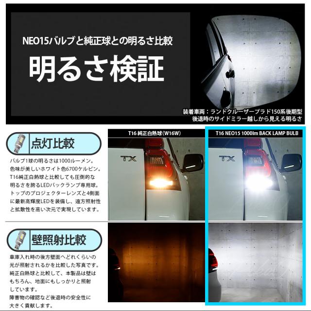 単 T16 LED バックランプ用LEDバルブ T16 NEO15 全光束1000lm ホワイト 6700K 後退灯 2個 41-A-1