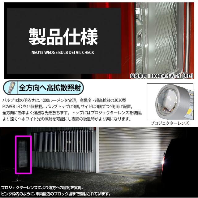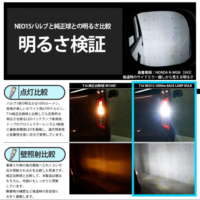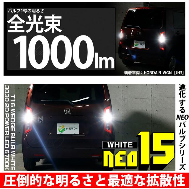 ホンダ N-WGN (JH3/JH4) 対応 LED バックランプ用LEDバルブ T16 NEO15 全光束1000lm ホワイト 6700K 後退灯 2個 41-A-1